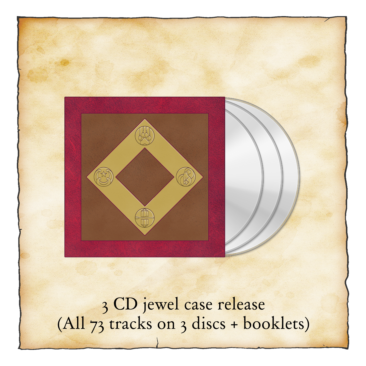 This album is printed on 3 audio CD’s and packaged in a bigbox double jewel case package featuring two 4 page booklets and inner and outer artwork.